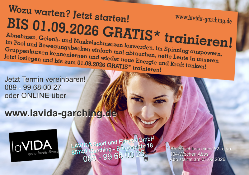 Wozu warten, jetzt starten! * Bei Abschluss eines 6-,12- oder 24 Monate Abo kannst du bis 01.09.2026 GRATIS das LaVida benutzen