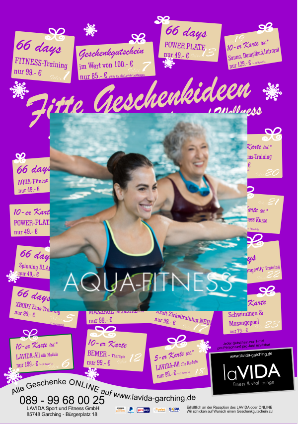66 Tage AQUA-FITNESS-Kurse nur 49.- €